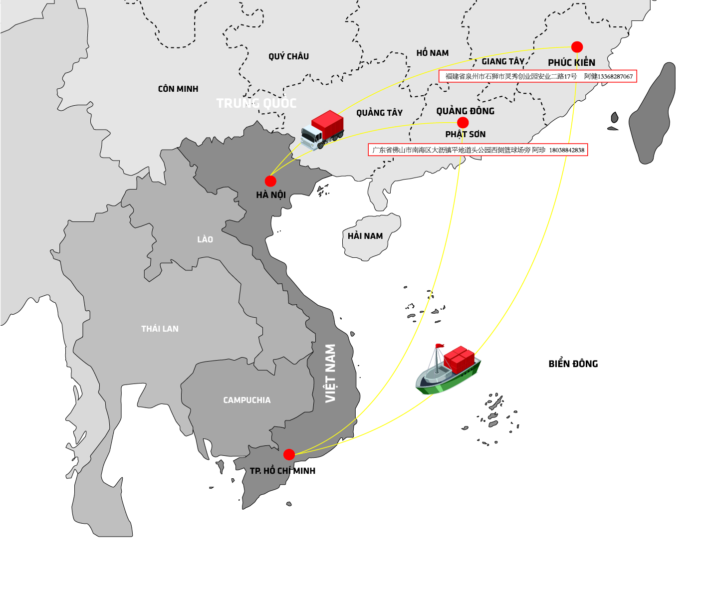 - Chúng tôi Vận chuyển Hàng hoá từ kho tại Việt Nam đến kho của bạn bất kể số lượng và thời gian mà bạn yêu cầu.